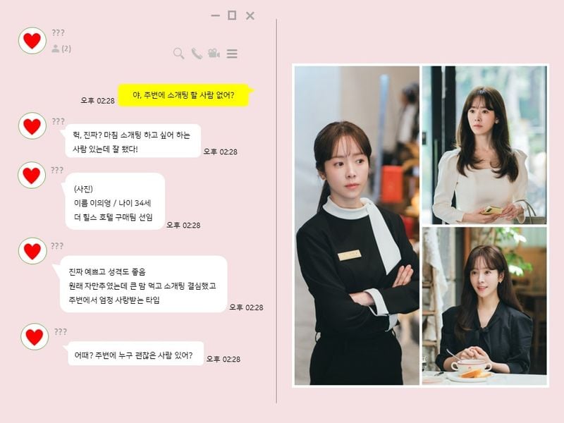 그런 가운데 공개된 사진에는 인만추를 선언한 이의영을 위해 누군가 소개팅을 주선하려는 대화가 담겨 있어 호기심을 돋운다. 소개팅할 사람을 묻는 메시지에 “주변에 괜찮은 사람 있어?”라며 되묻는 주선자는 이의영의 나이와 직업 등 기본 정보와 함께 사진을 공유하며 적극적으로 추천하고 있다.