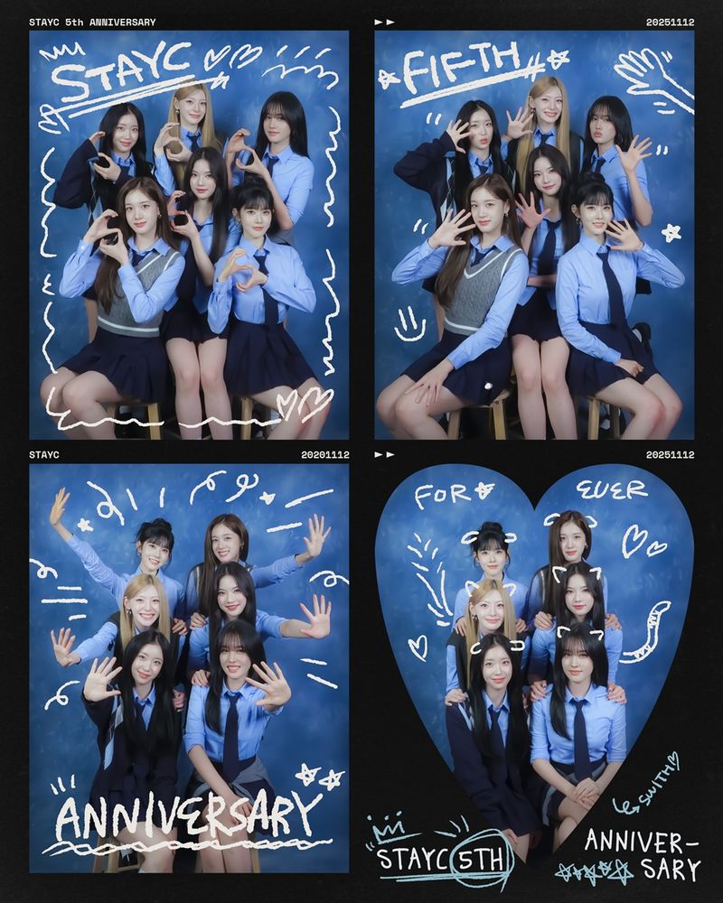 스테이씨(수민, 시은, 아이사, 세은, 윤, 재이)는 11월 12일 데뷔 5주년을 맞아 축전 이미지를 공개했다.