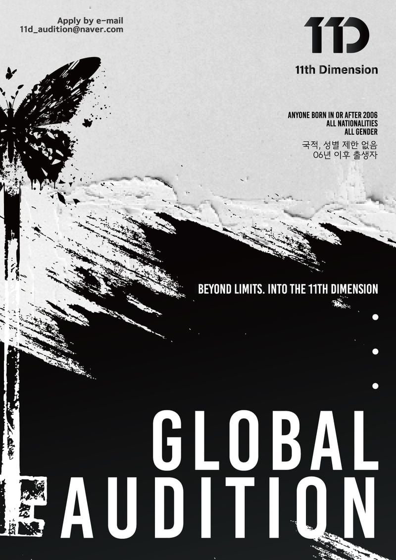 11D에서 진행하는 ‘11D GLOBAL AUDITION IN BEIJING’은 보컬, 댄스, 랩 분야를 모집하며, 2006년 이후 출생자라면 국적과 성별에 관계없이 누구나 지원할 수 있다.