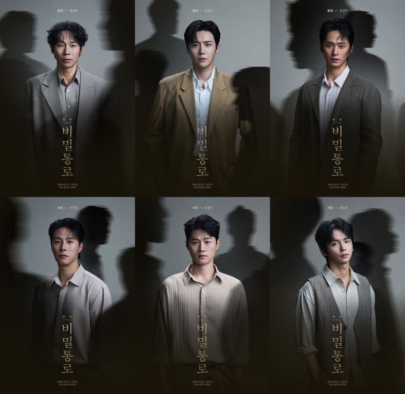 2026년 기대작 연극 ‘비밀통로’가 양경원, 김선호, 김성규, 이시형, 오경주, 강승호 등 6인의 캐릭터 포스터를 공개했다.