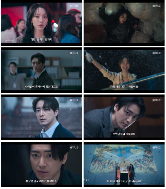 함께 공개된 메인 예고편은 “거짓은 아름다운 저녁노을처럼 모든 것을 멋지게 보이게 합니다. 다만 들키기 전까지”라는 의미심장한 ‘사라킴’의 나레이션과 함께, 쓰레기 더미에 떨어져 눈물을 흘리는 장면으로 시작한다.