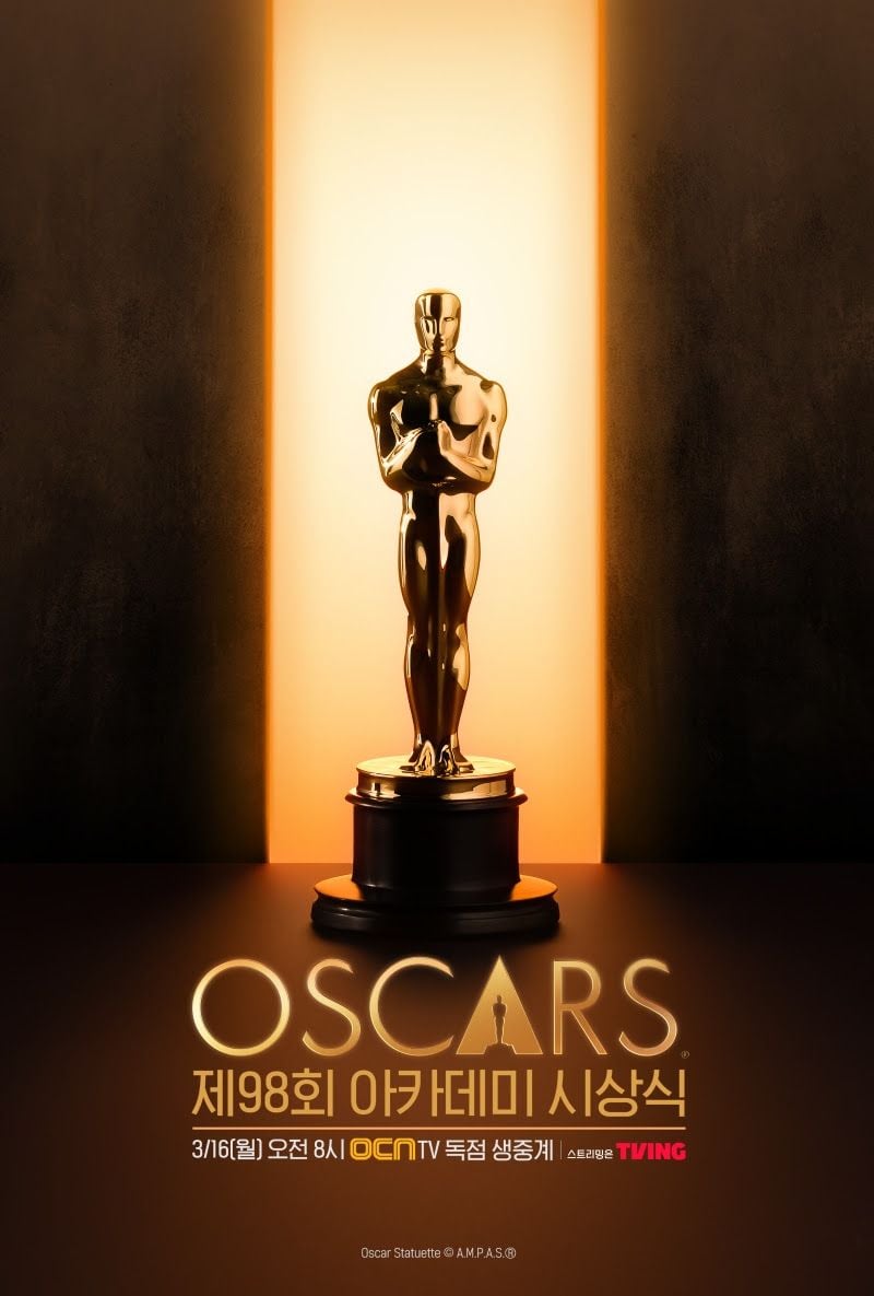 K콘텐츠의 후보 지목 및 그 어느 때보다 치열한 경합이 예상되는 후보자, 작품들로 뜨거운 관심을 모으고 있는 최고의 영화 축제 ‘제98회 아카데미 시상식’은 오는 3월 16일(월), 오전 8시 채널 OCN을 통해 국내 TV 독점 생중계된다. TVING 내 OCN 채널 라이브로도 실시간 시청이 가능하다.