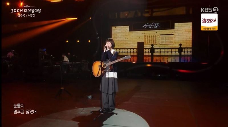 이번 '더 시즌즈' 출연을 통해 한층 확장된 음악적 면모를 보여준 김수영은 앞으로도 다양한 무대를 통해 관객과의 접점을 넓히며 음악으로 소통을 이어갈 예정이다.[사진 = KBS 2TV '더 시즌즈-십센치의 쓰담쓰담' 방송 캡처]