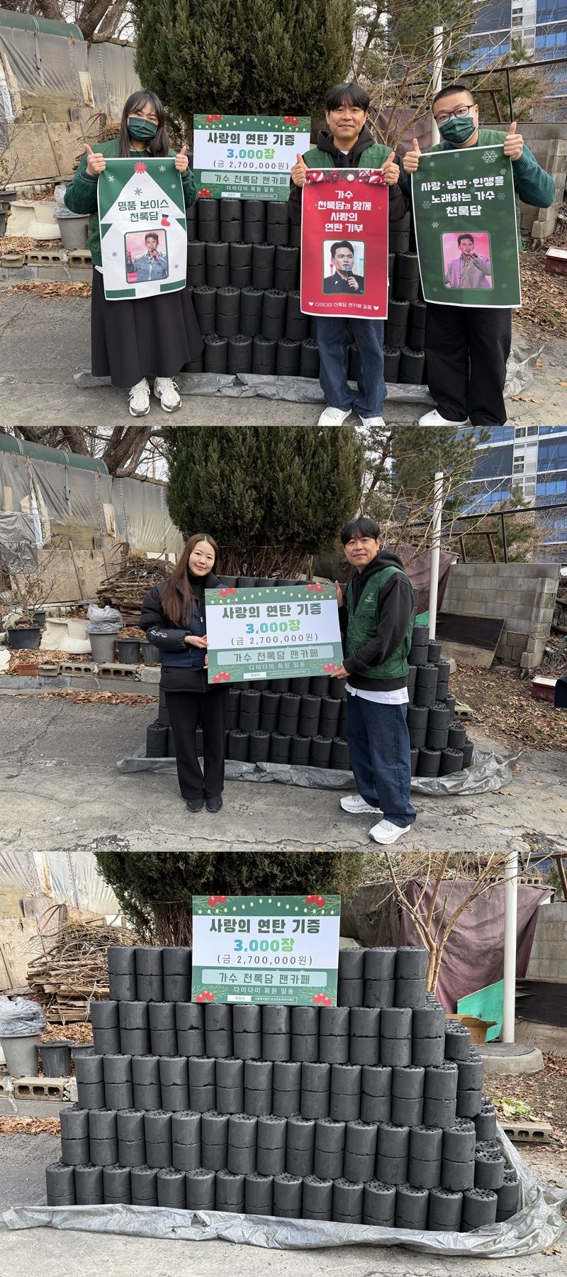 가수 천록담 팬카페 다미다미가 연탄 3000장 기부로 선한 영향력을 전파했다.