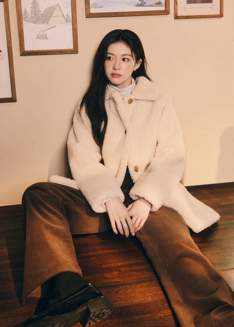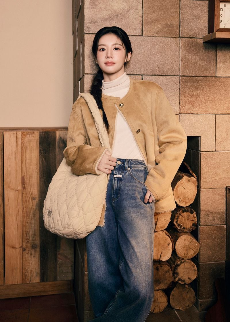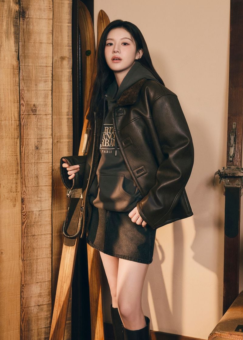 클래식 무드의 오버핏 무스탕 재킷과 데님 미니스커트를 매치해 세련된 스타일을 연출했으며, 부드러운 터치감의 리버시블 시어링 재킷에 와이드 핏 데님 팬츠를 더해 캐주얼하면서도 감각적인 데일리 무드를 보여주었다.