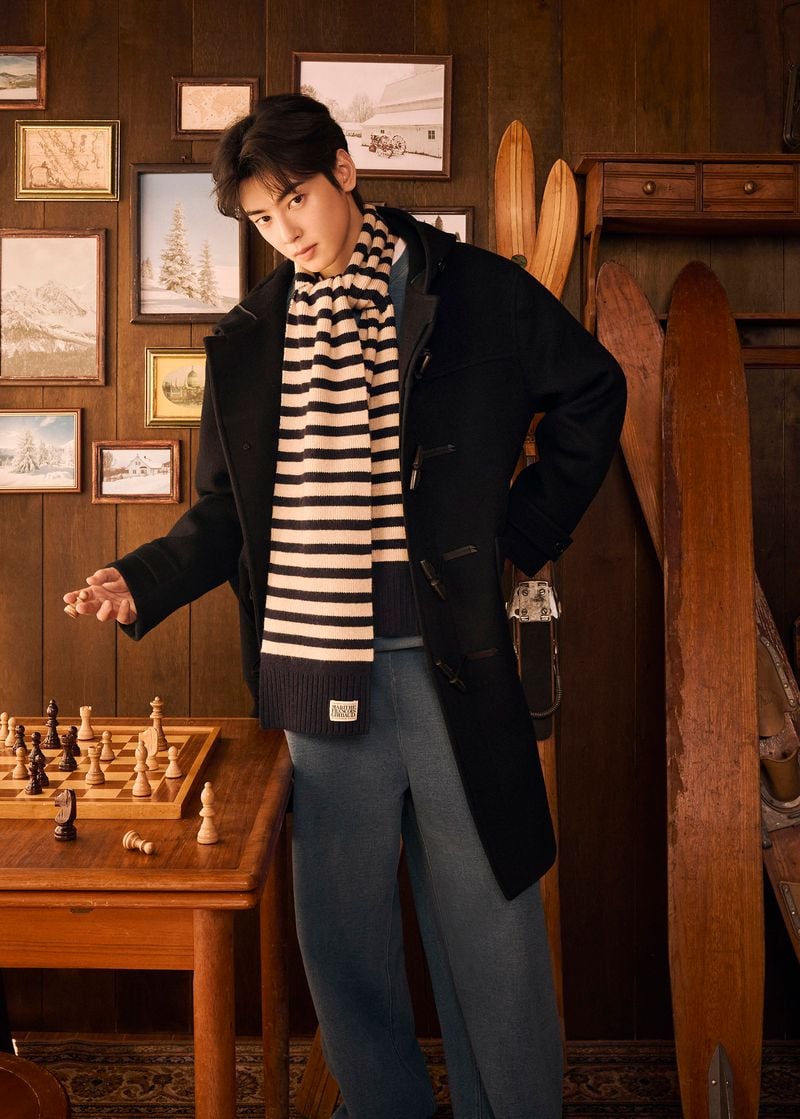 차은우는 체스를 두거나 따뜻한 음료를 즐기는 여유로운 모습으로 겨울의 고요한 온기를 전하며 감성적인 무드를 완성했다.