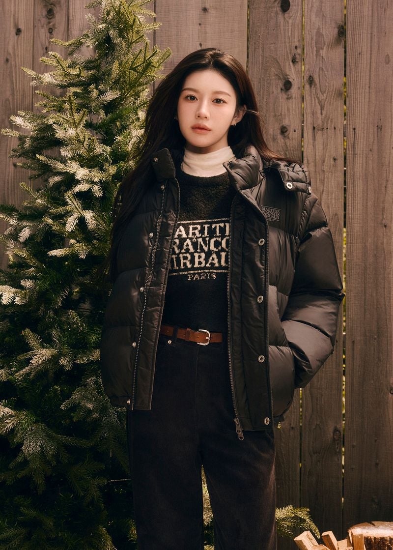 또한 베이지 컬러 덕 다운 푸퍼와 레터링 로고 풀오버 니트의 톤온톤 스타일링으로 부드럽고 따뜻한 겨울 무드를 완성했다.