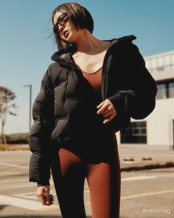 이너를 과감히 생략한 금새록은 특유의 담백한 표정과 절제된 제스처로 강인함과 유연함이 공존하는 여성미를 드러냈으며, 다운 자켓의 구조적인 형태가 도시적인 세련미를 더했다.